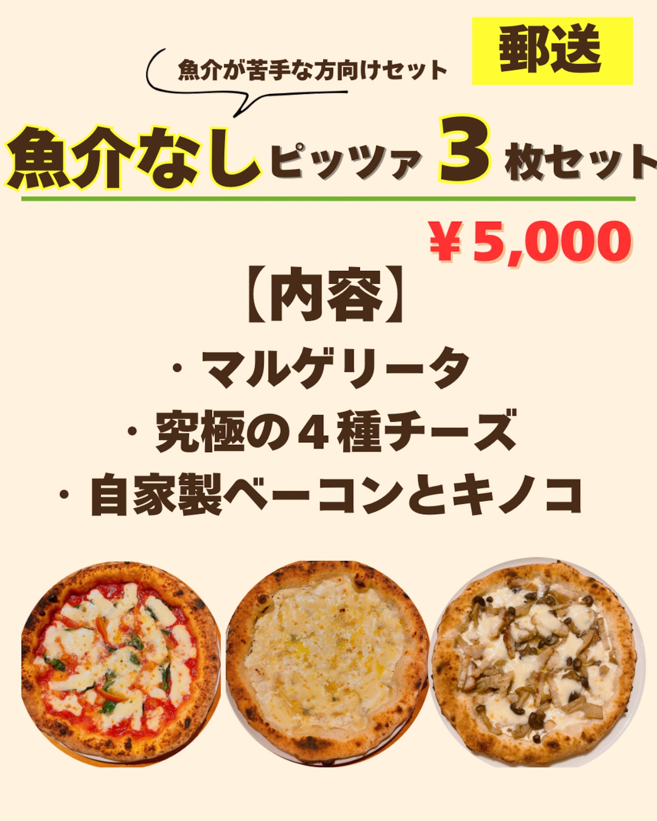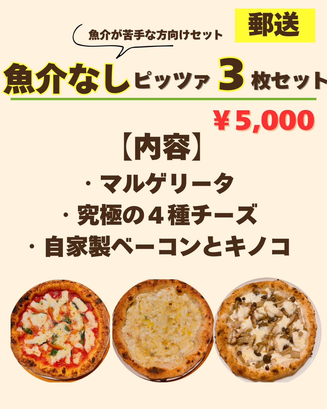 (冷凍)(郵送)ピッツァ3枚セット(魚介が苦手の方にオススメ)